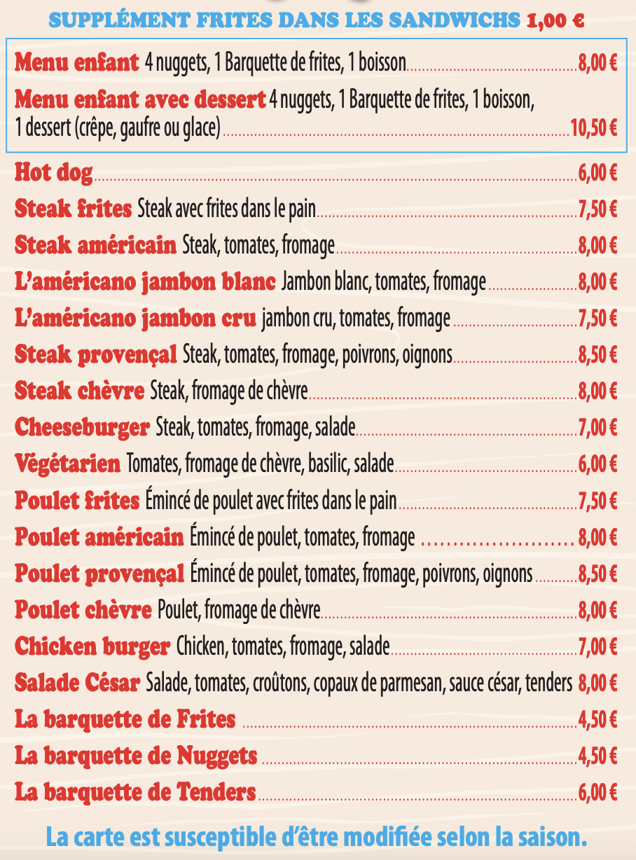 avec menu enfant inclus sur réservation